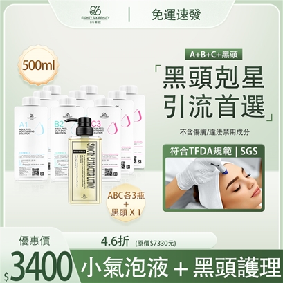 86美妝小氣泡全效獲利組,內含A1柔嫩保濕、B2控油舒緩、C3修護提亮各三瓶,及黑頭護理液一瓶。本組符合TFDA規範,採植物韻律中性無酸配方,敏弱肌亦可安心操作。專為美容院高翻桌率設計,一組可服務75人次,單次耗材成本僅53元,創造近13倍純利回報,達成每天3個客人月入4萬的目標。登入官網分享頁面,最高享12%現金分潤,成功推薦9位姐妹下單,本組套餐直接免單,讓妳實現耗材0元計畫。